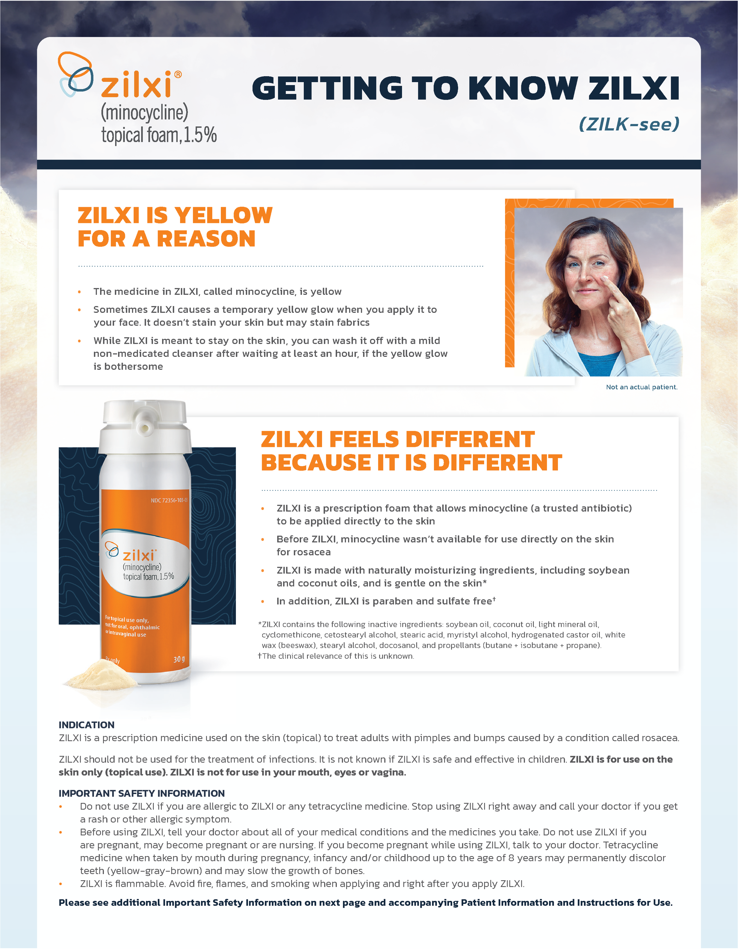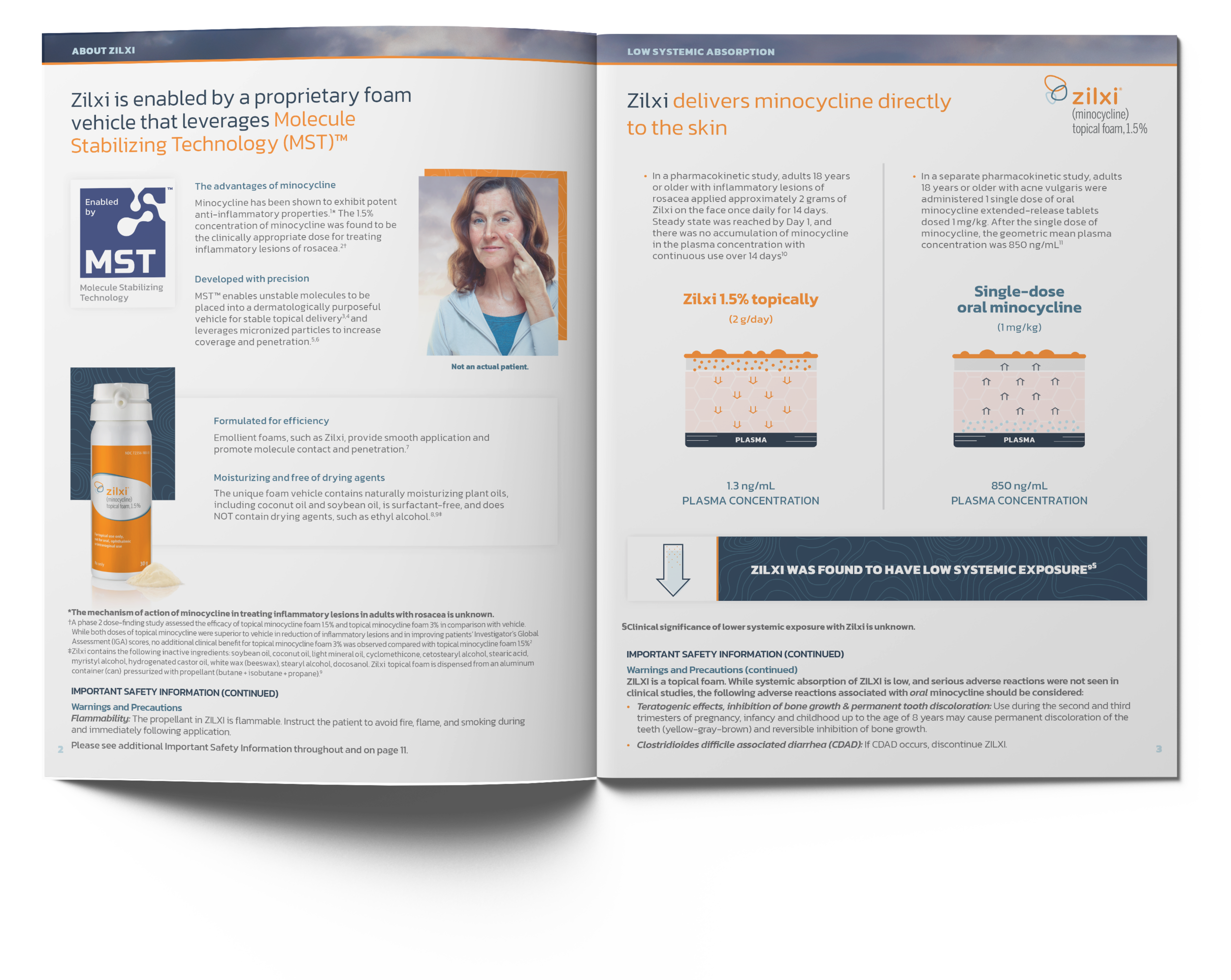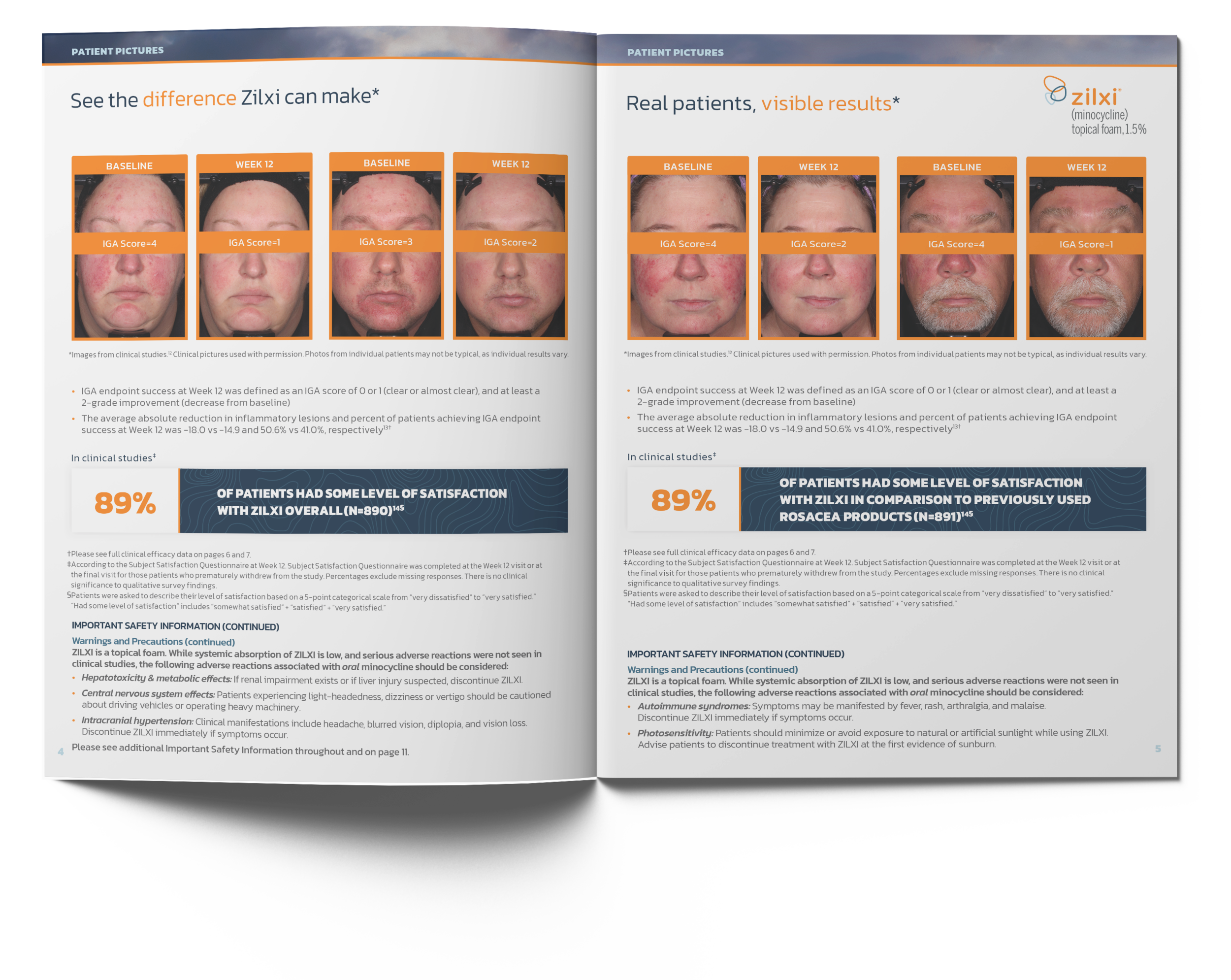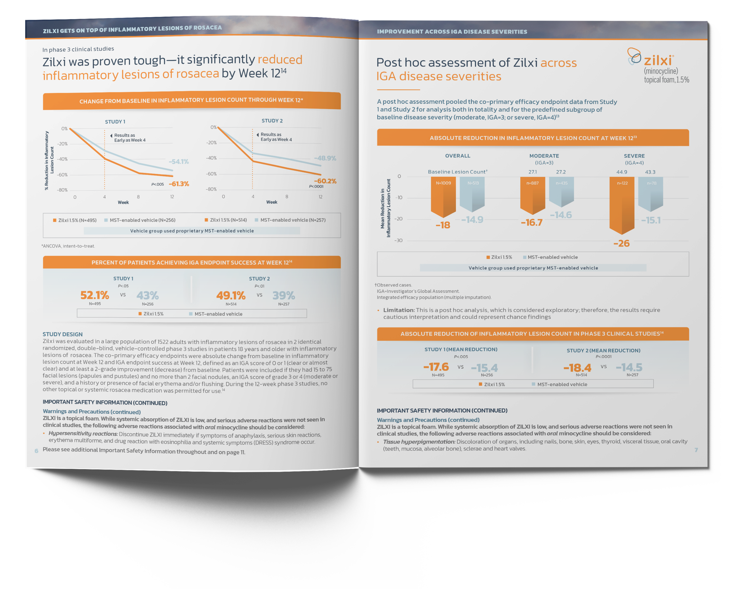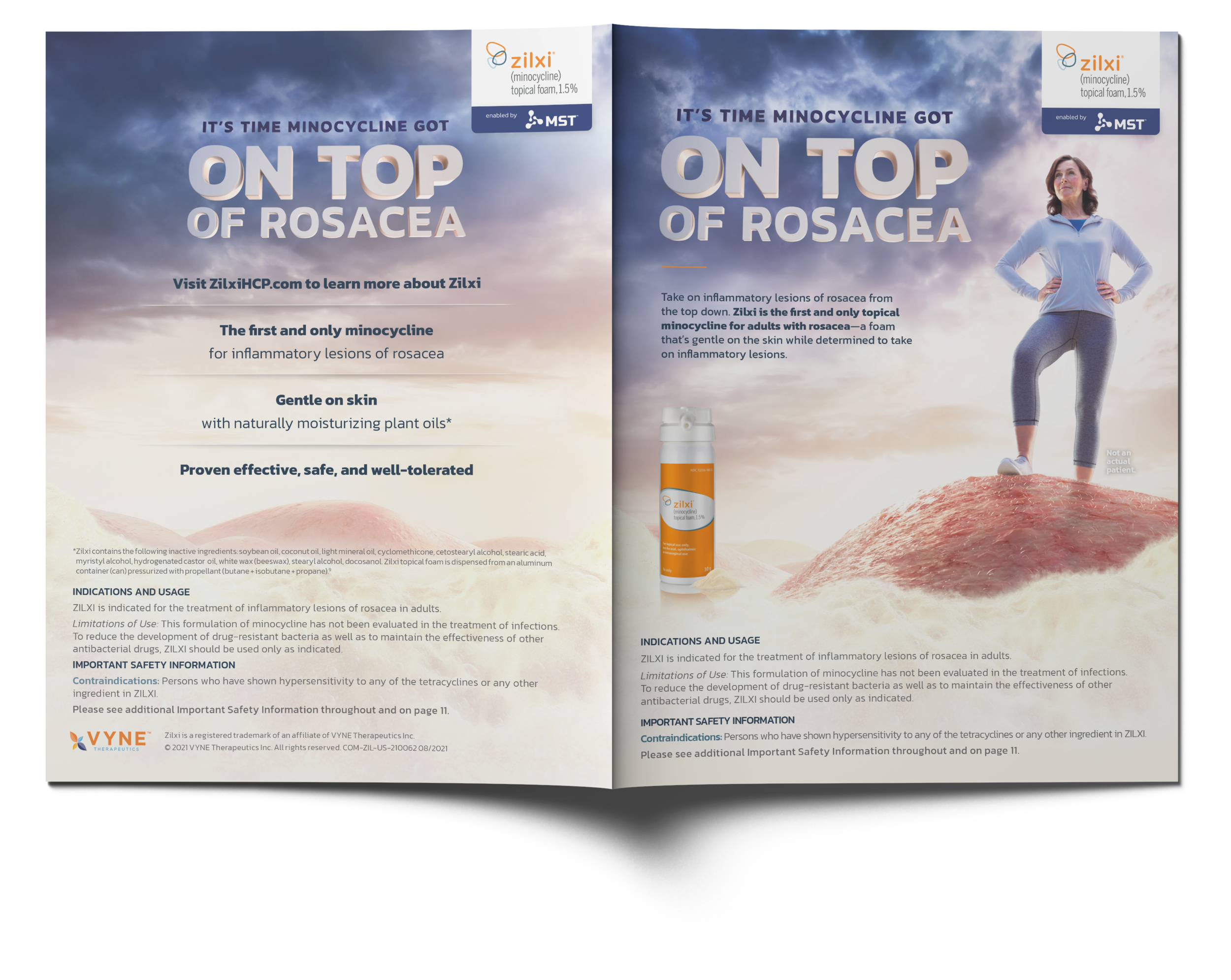 Zilxi is a prescription topical foam used to treat the pimples and bumps caused by rosacea in adults. As part of a refreshed creative campaign, our team developed new materials aimed at both consumer and HCP audiences. I created a range of print and digital assets, including banner ads, leave-behinds, and in-office posters, all aligned with the updated campaign branding.